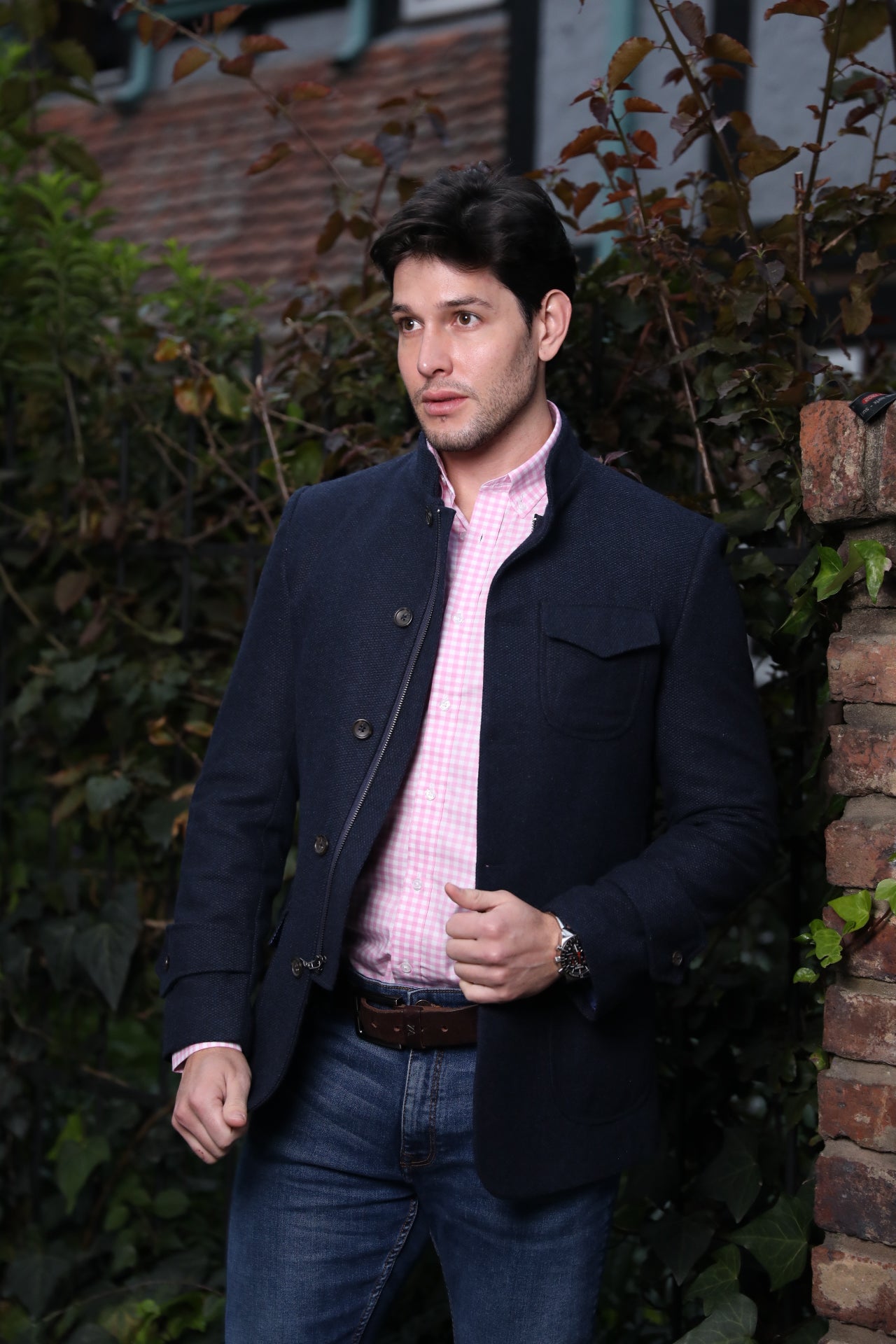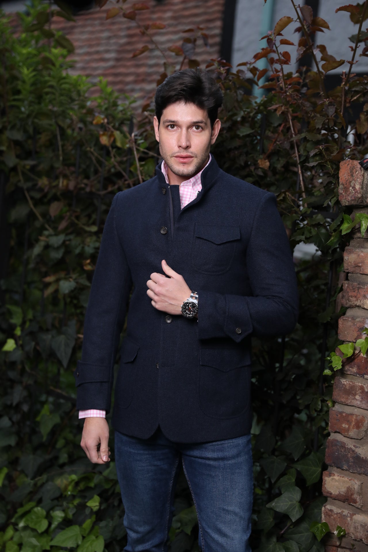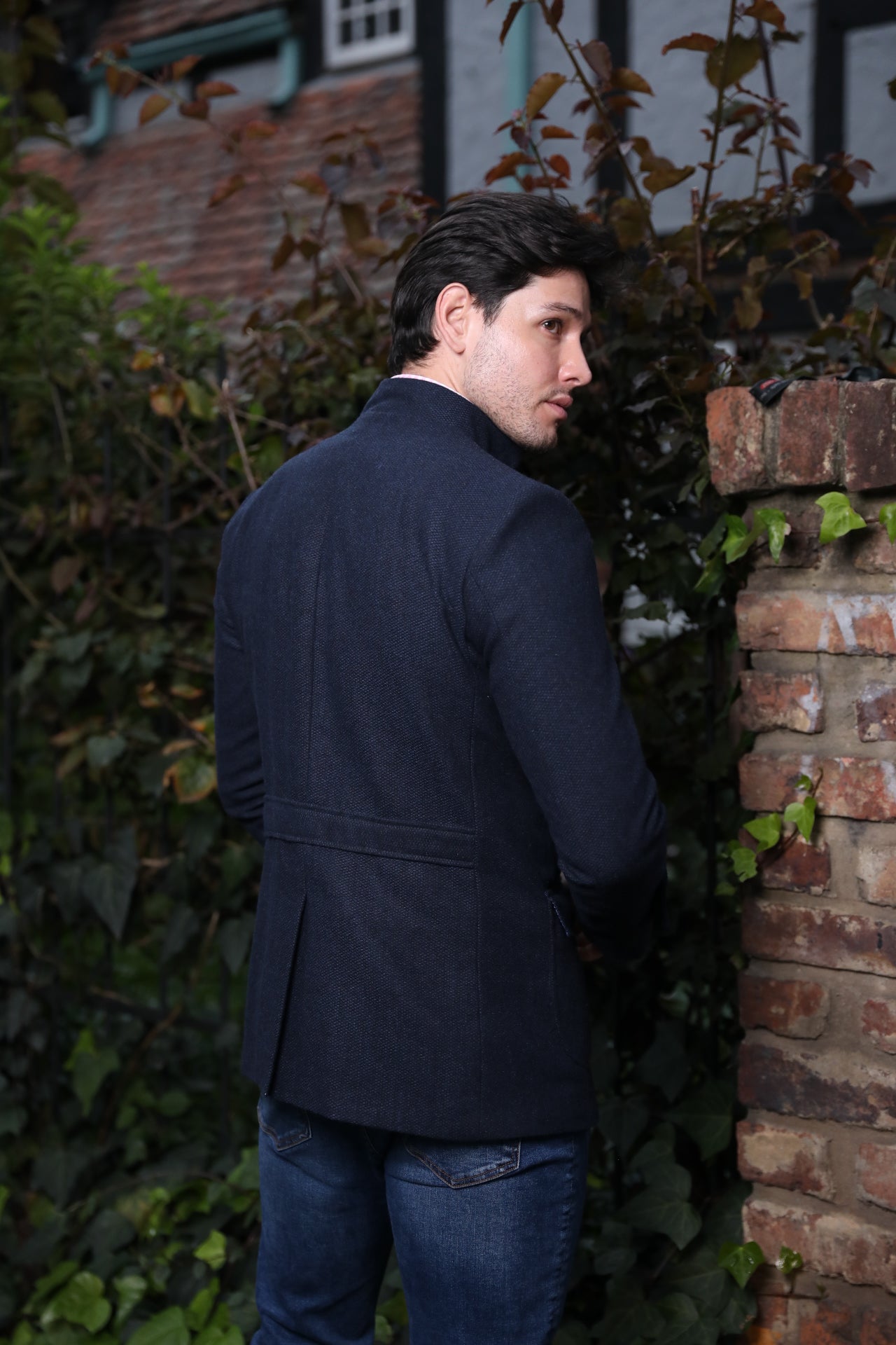 Abrigo Corto Frat Cuello Neru Azul Oscuro Jaspeado